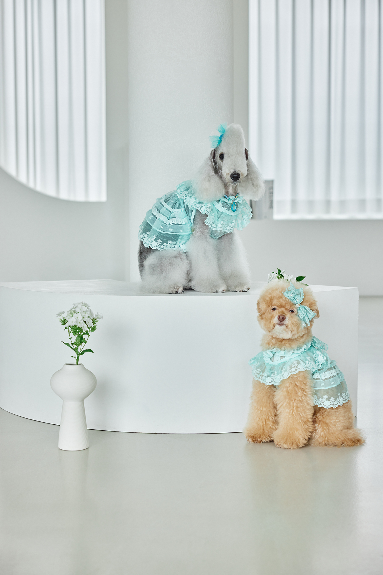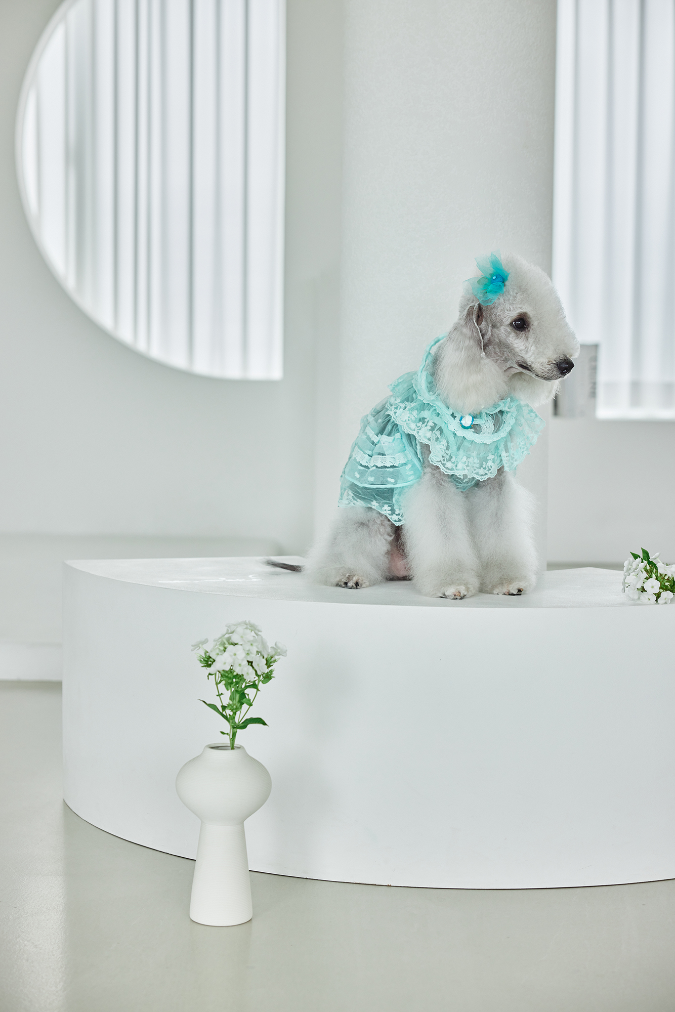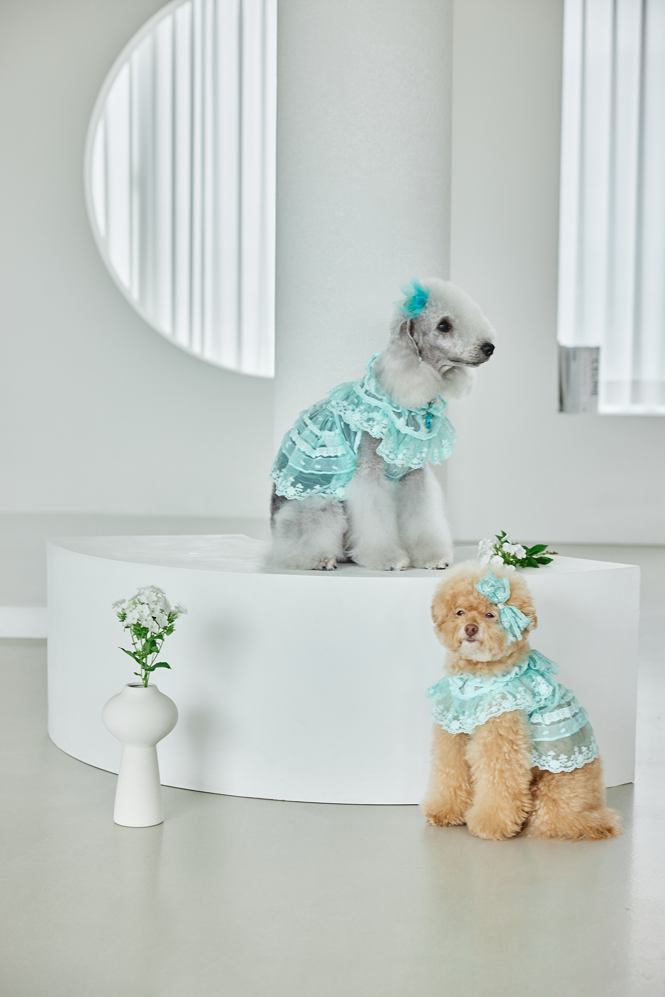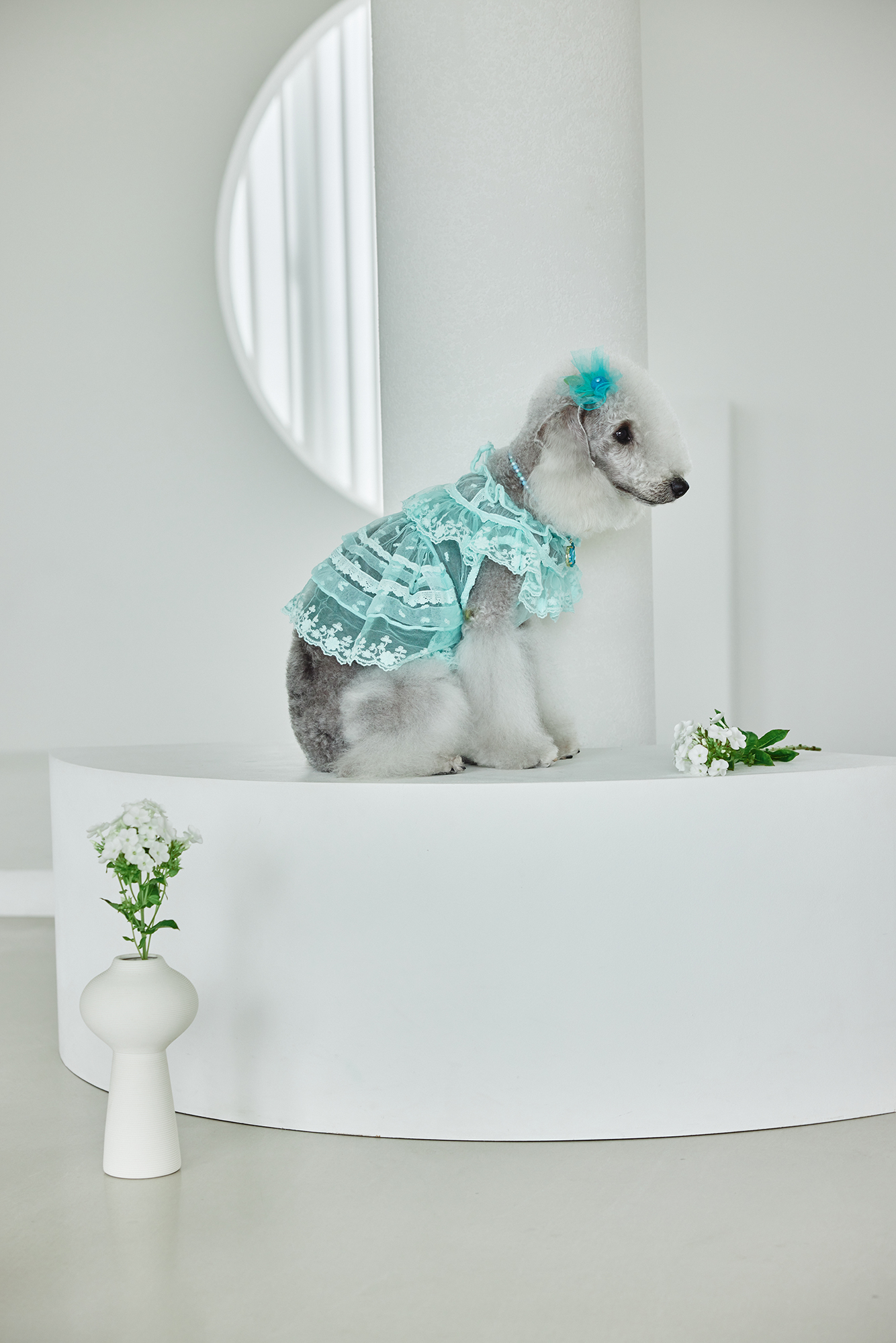 청량감이 돋보이는 컬러감의 빈티지드레스는