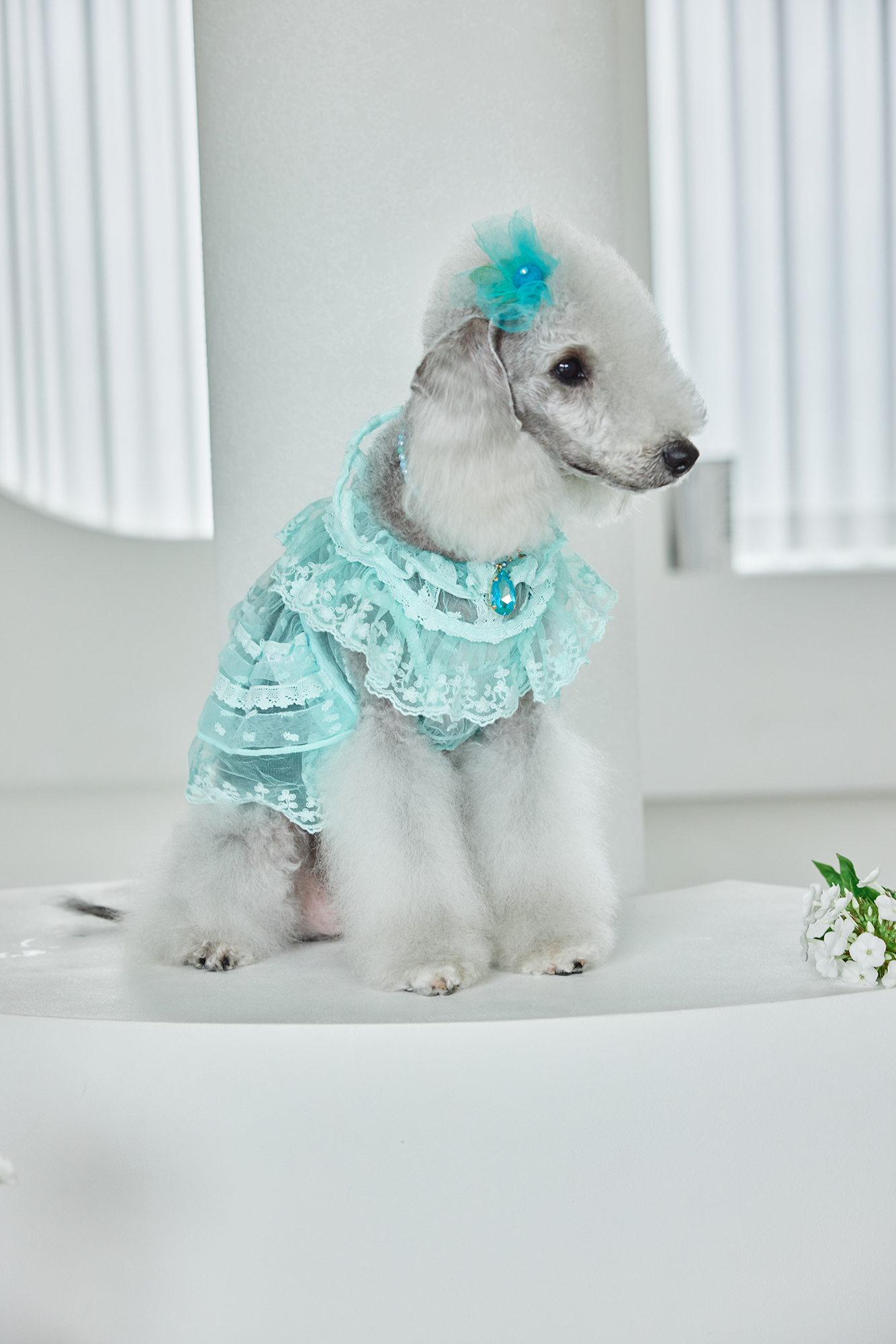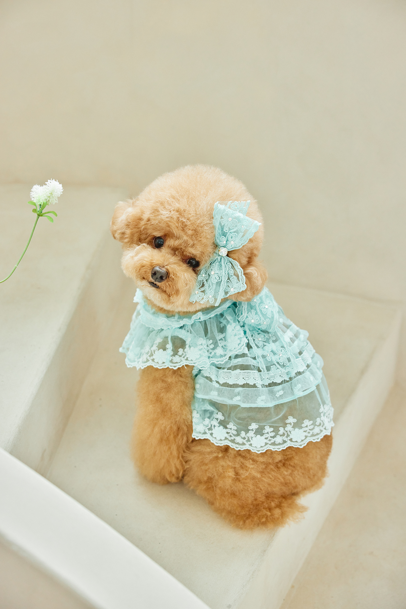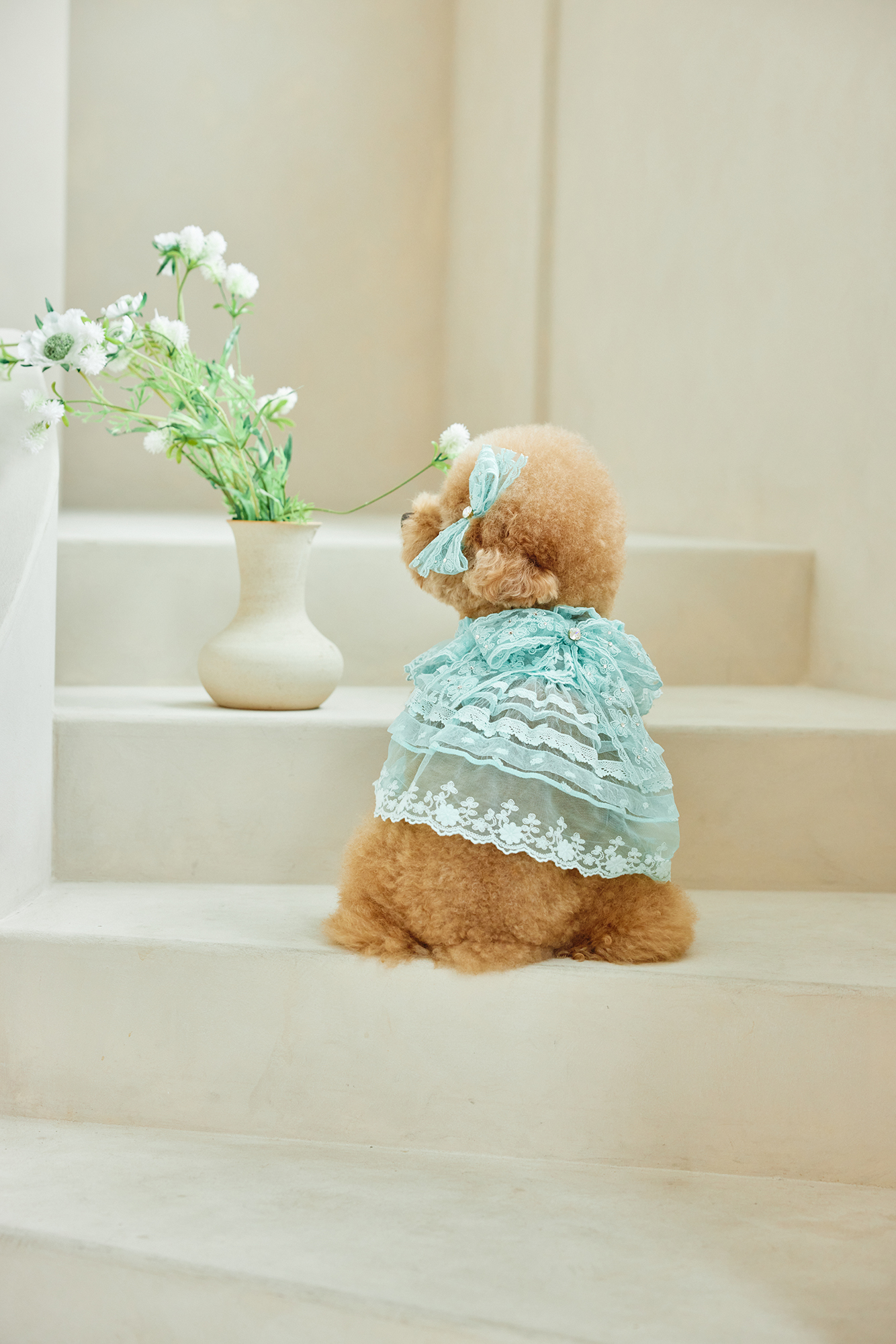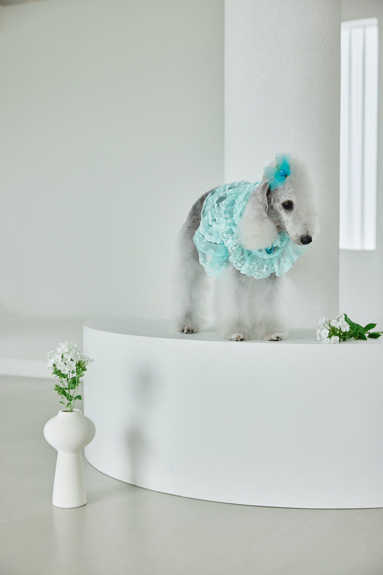청량감이 돋보이는 컬러감의 빈티지드레스는