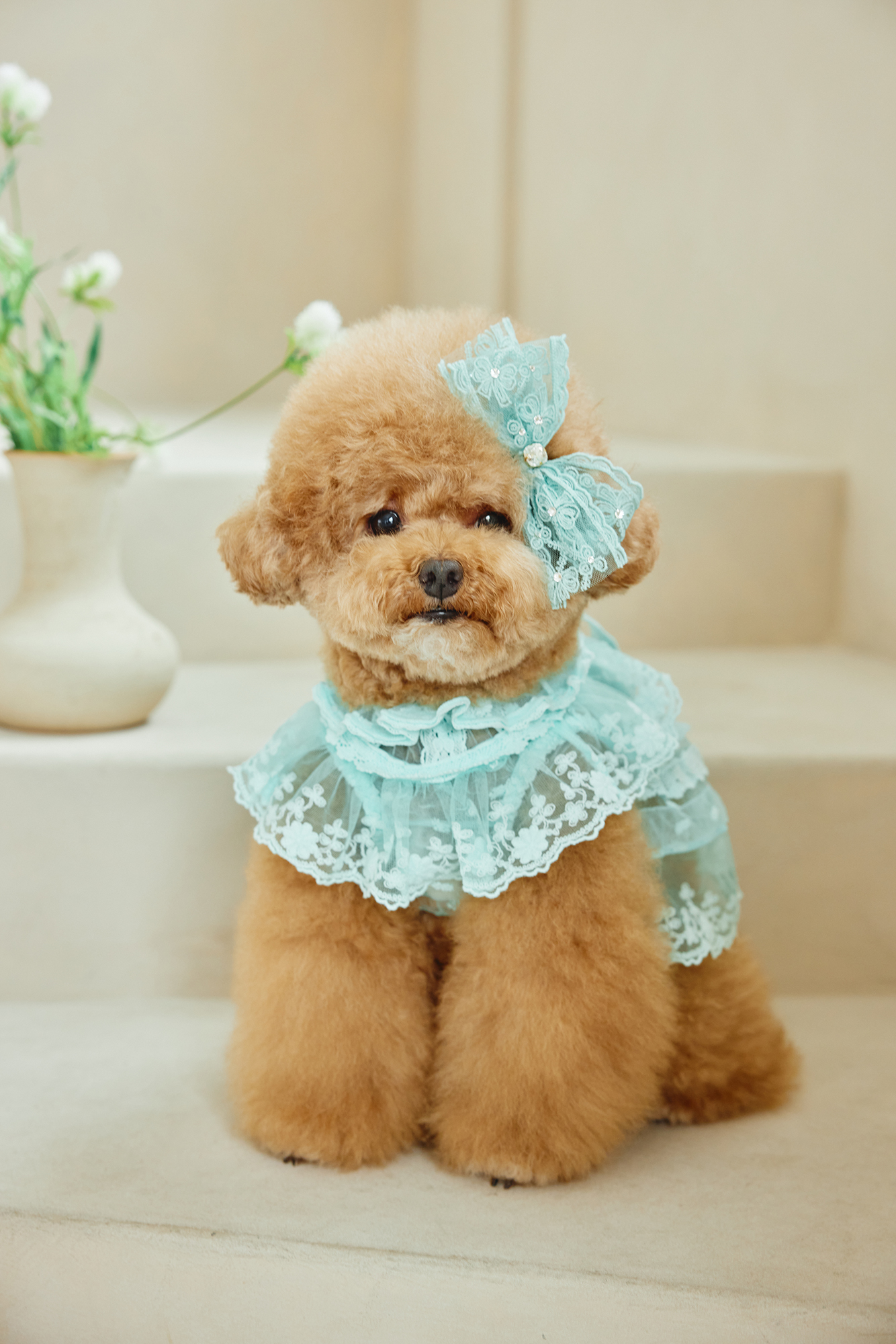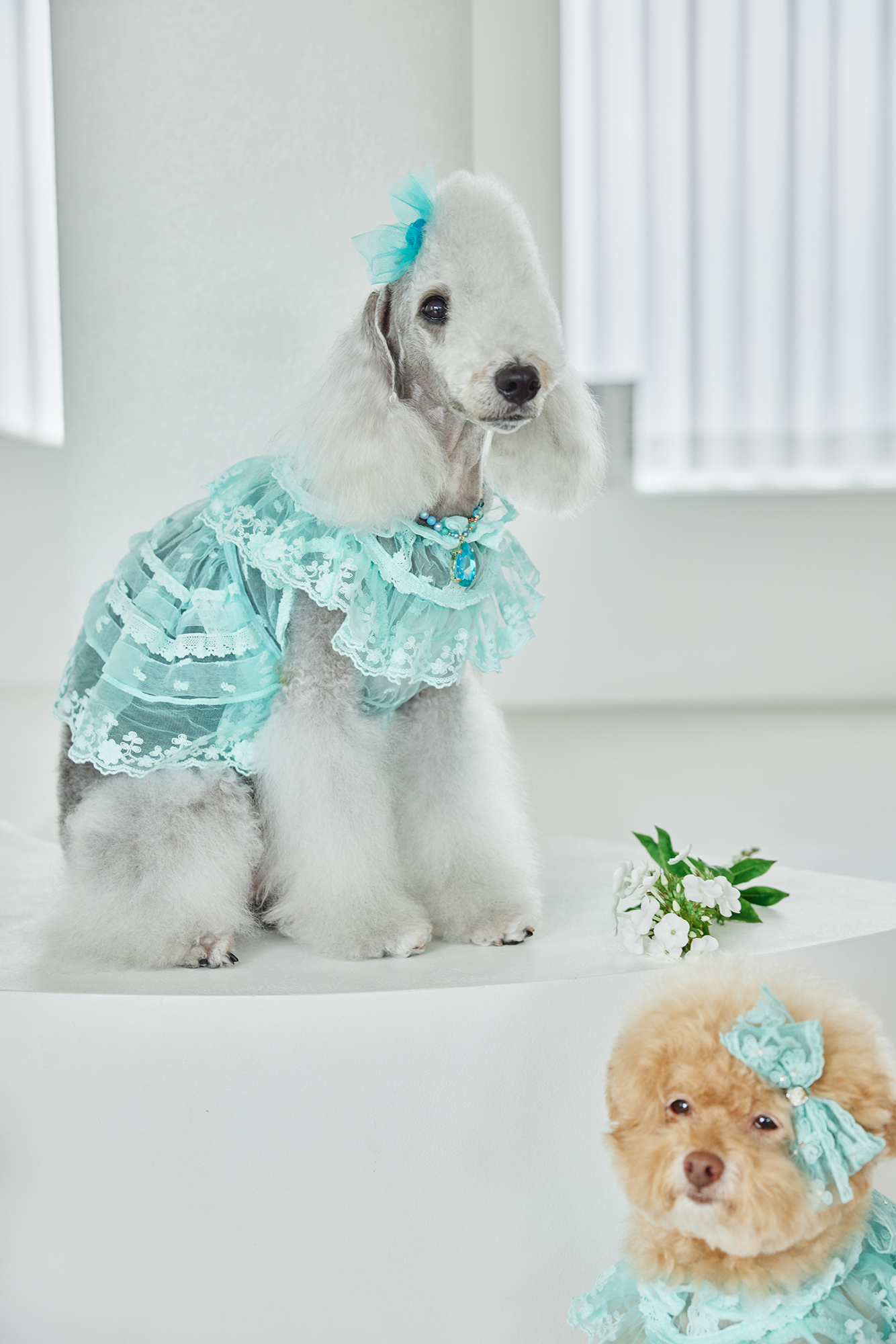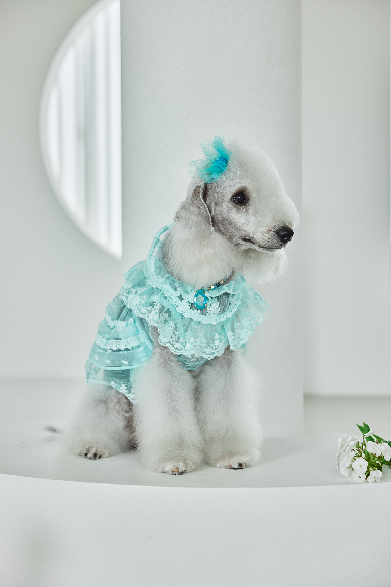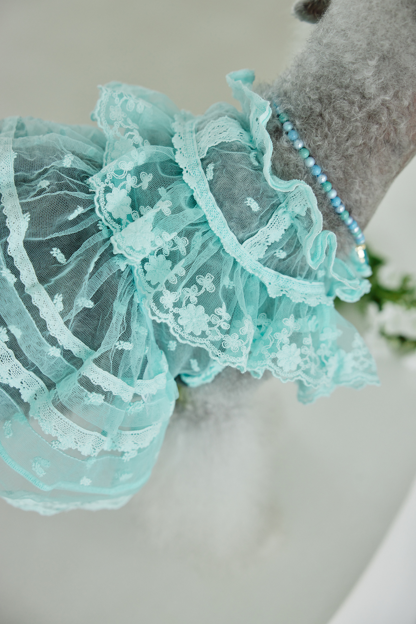 청량감이 돋보이는 컬러감의 빈티지드레스는