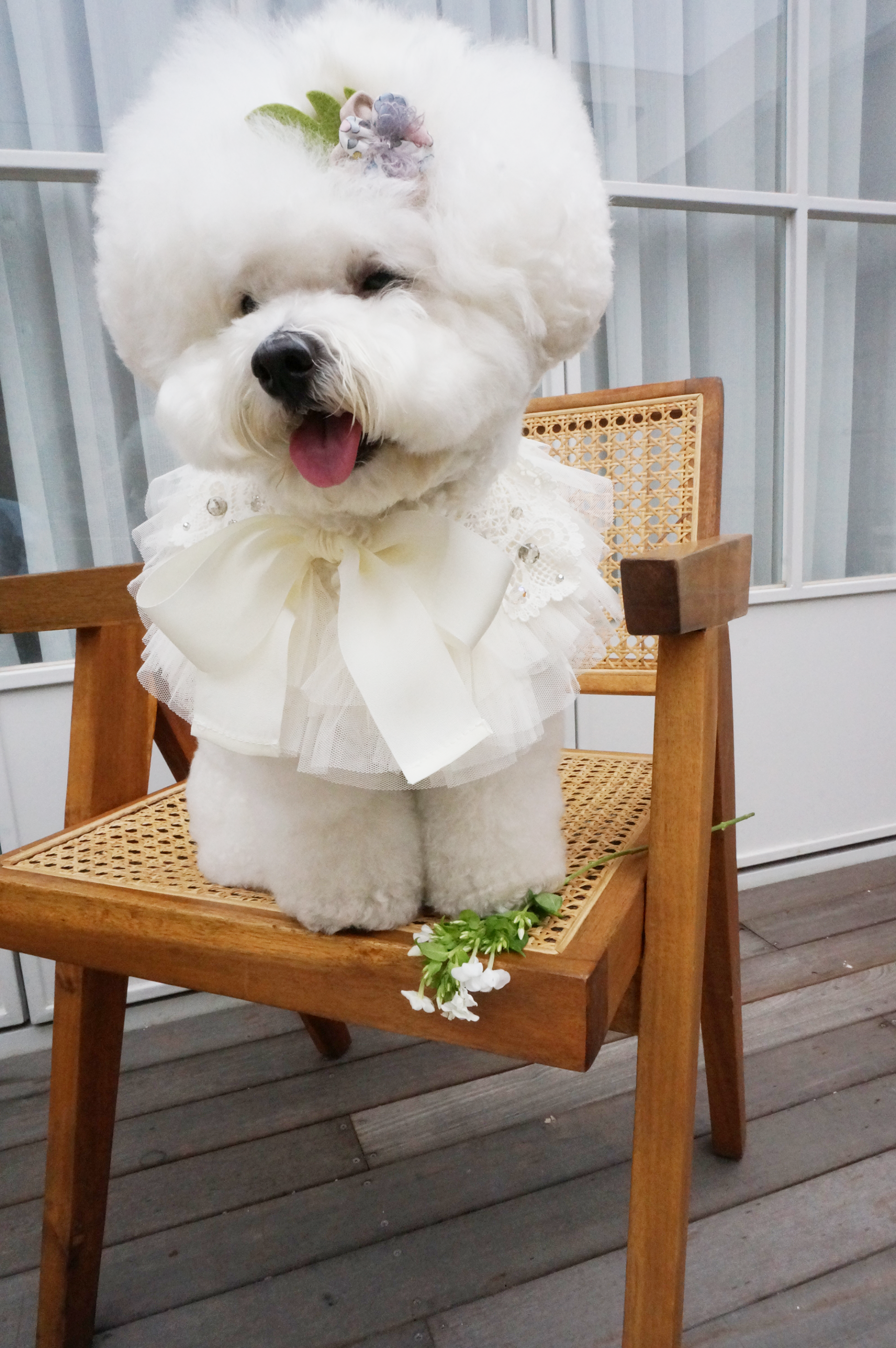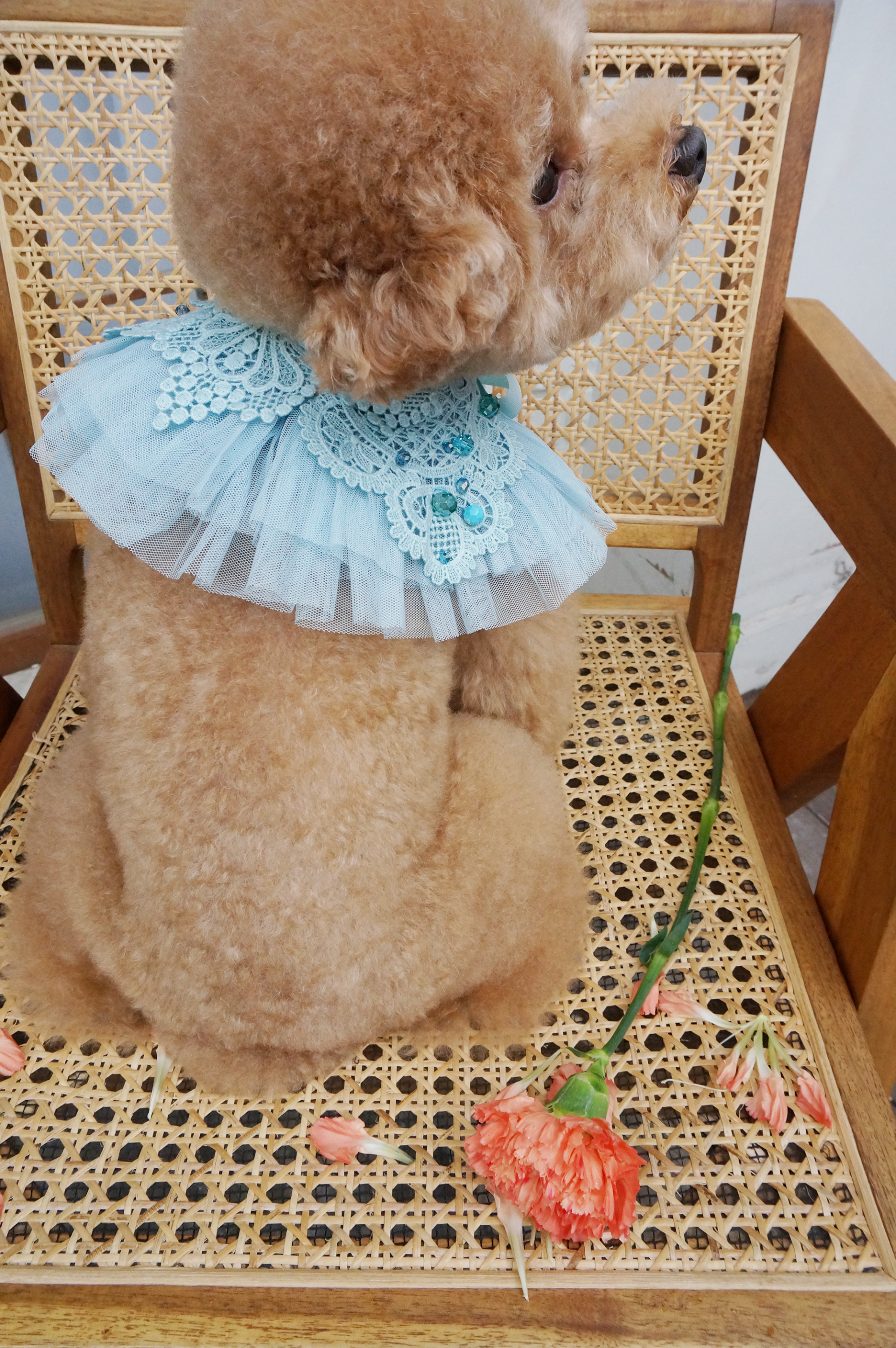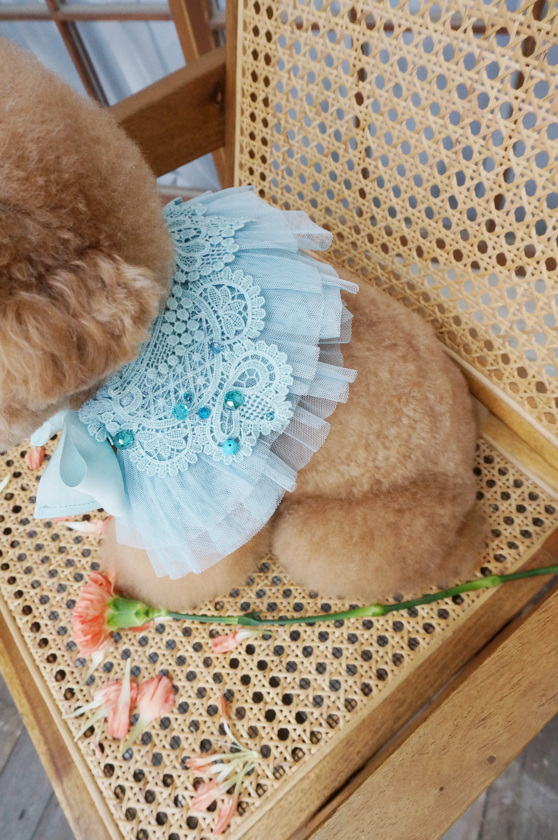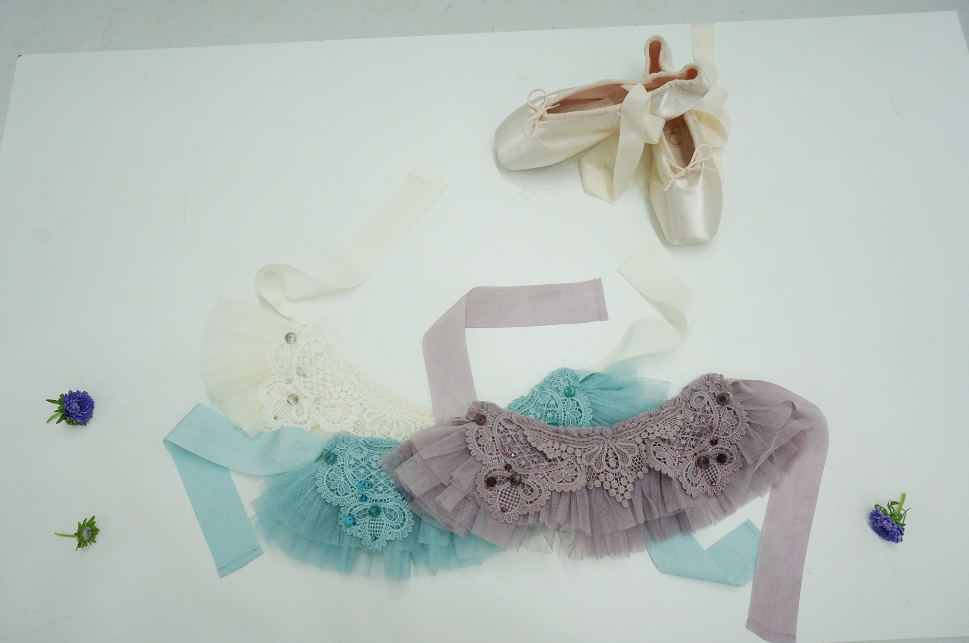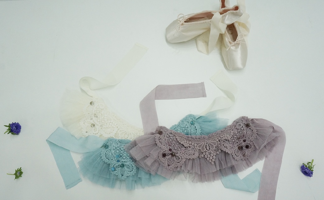 인견(silk)리본끈에 넥 라인은 soft mash, cotten 레이스 위 케이프 보석은 스와로브스키 보석과 크리스탈로 만들어진 발레리나 케이프입니다.